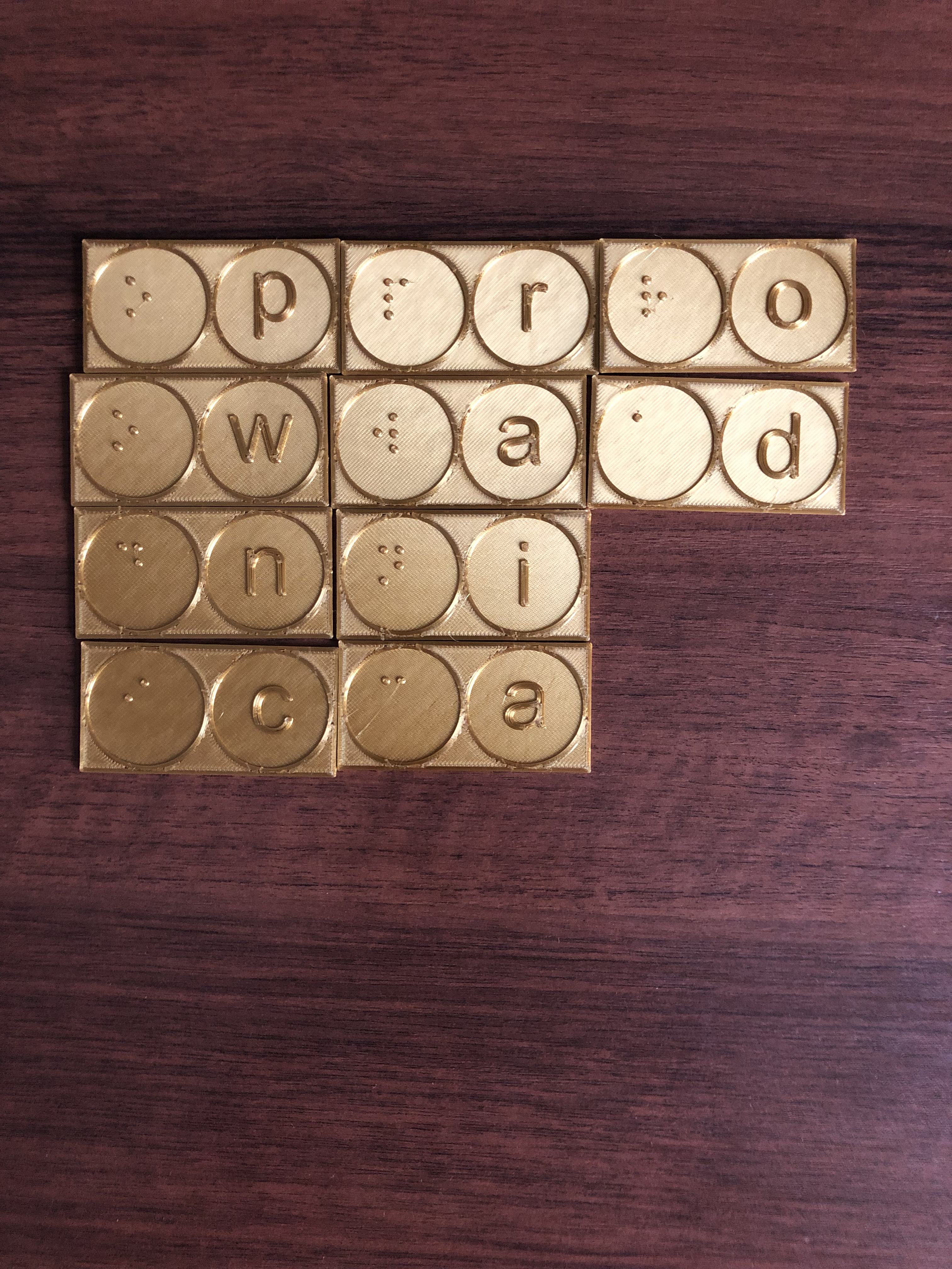 Prace nad wykorzystaniem druku 3d na rzecz osób niewidomych prowadzimy od października 2021 roku. Wykonujemy oznakowania z napisami w alfabecie Brajla, przybory edukacyjne, przedmioty codziennego użytku, wreszcie plany tyflograficzne i makiety.